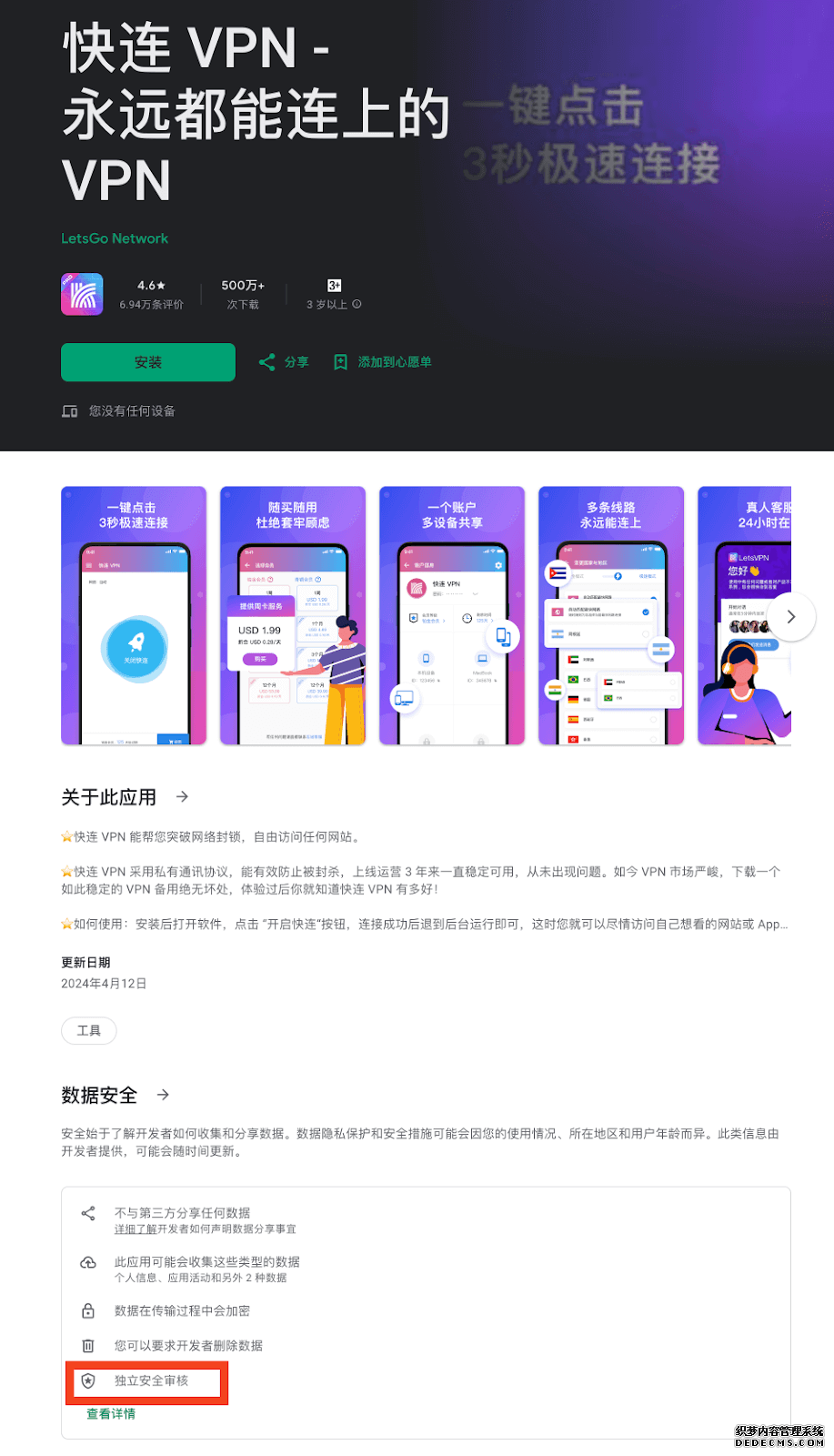 在数千款 VPN 中,只有屈指可数的 VPN 获得了 Google 安全审核徽章,例如: