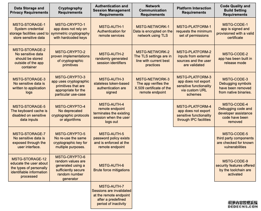 3. 六个纬度,三十二大项:审核涵盖数据储存与隐私、密码加密、身份验证、网络通讯、平台交互、代码质量与构建等六个纬度,共三十二大项,上百细则内容。